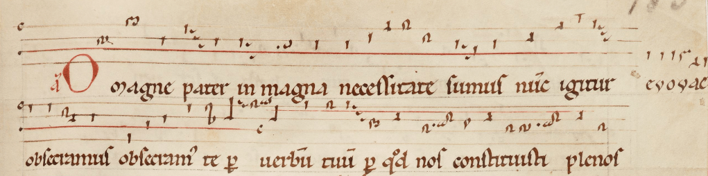 Gregorio software I use to transcribe the chants as notated in the manuscript into material that can be used by choirs. For instance, the following composition by Radbod of Utrecht (899-917), as notated in NL-Uu 406 results in the subsequent notation: