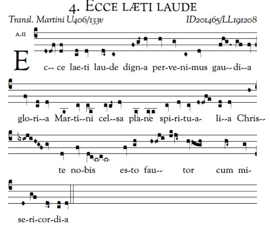 De integrale uitvoering van alle 42 gezangen van het officie Translatio Martini zoals genoteerd in U406 – een Utrechts handschrift uit de twaalfde eeuw – en getranscribeerd door de Gregorius Fundatie in het kader van dit project maakt deel uit van dit project. Vanavond worden de eerste vespers (19:00-19:45) en de metten gezongen. (21:00-23:00 uur).