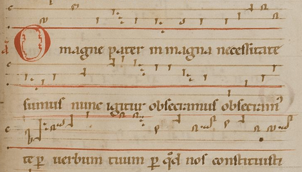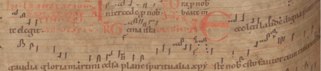 Thousands of notated manuscripts still exist, written from Malta to Reykjavik and by the month, more are available for consultation for free. Have a look at the Database CANTUS and the MMMO database, to which I contributed also. The Symphonia are notated in two manuscripts, one from a Belgian Benedictine abbey in Dendermonde kept at the Alamire Library in Leuven, the other is the so-called Riesenkodex from Wiesbaden. We will have a look at them in the next blog.