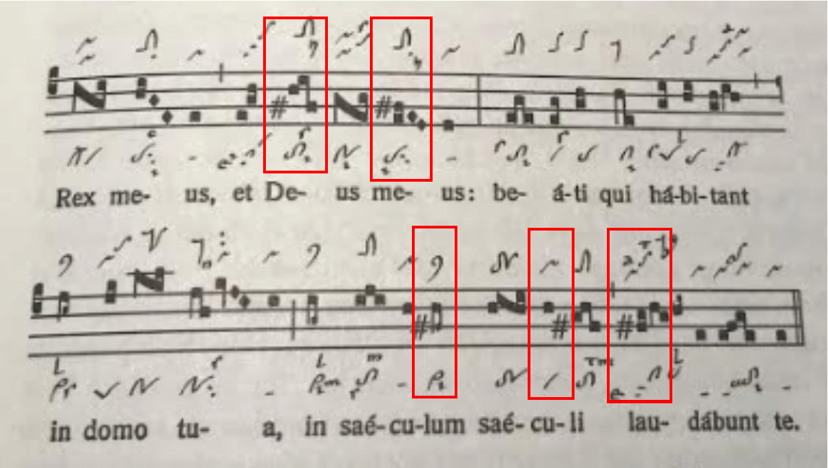 Microtonen, kruizen en mollen, glissandi en voorslagen, gezongen medeklinkers: allemaal Middeleeuwse interrupties van ons serene klankbeeld van het gregoriaans die via een retorisch schema verwijzen naar de inhoud en de strekking van de gezongen tekst..
