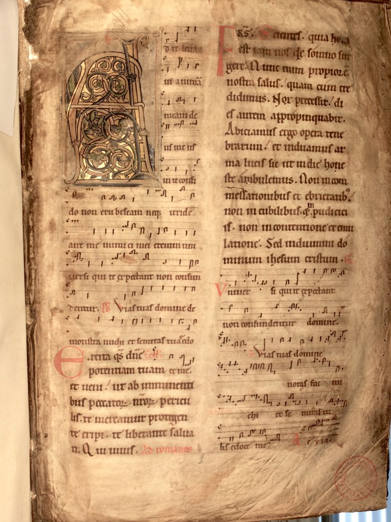 De samenwerking met het Gregoriaans Koor Utrecht naar aanleiding van de Dag van het Gregoriaans in 2019 is zo goed bevallen dat we samen een meerjarig groot project aandurven: de verklanking van officies en misgezangen zoals genoteerd in de 12e-eeuwse Utrechtse handschriften. Dat zijn achtereenvolgens de fragmenten van een antifonarium van de Paulusabdij (1100-1125, restanten van het oudst bekende genoteerde officie in de Lage Landen), U406, het antifonarium van de kapittelkerk Sint Marie (rond 1140) en het missaal van de Dom, handschrift Catharijneconvent ABM h62.
